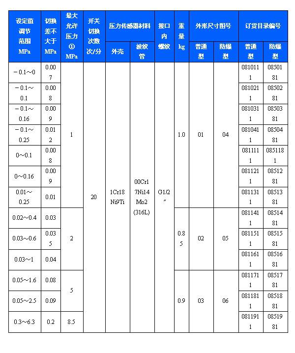 511/7D防爆壓力開關(guān)使用溫度范圍大,可用于腐蝕性介質(zhì)。