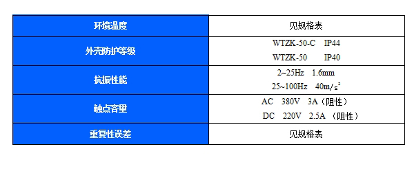 WTZK-50-C溫度開關采用帶毛細管溫包式的傳感器??捎糜趯︺~和銅合金無腐蝕作用的氣體、蒸汽等氣體介質(zhì)或液體介質(zhì)。WTZK-50-C溫度開關的設定值可調(diào),調(diào)節(jié)范圍-60~170℃。WTZK-50-C采用鑄鋁殼體,為防水型。WTZK-50-C溫度開關滿足船用條件。WTZK-50采用酚醛壓塑粉殼體,為普通型。