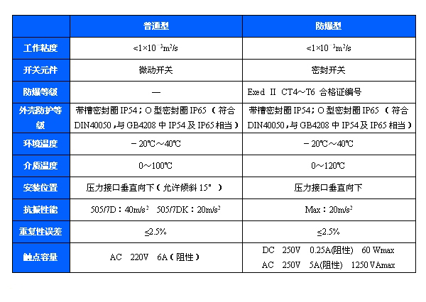 505/7D壓力開關(guān)用于含油霧的中性氣體。