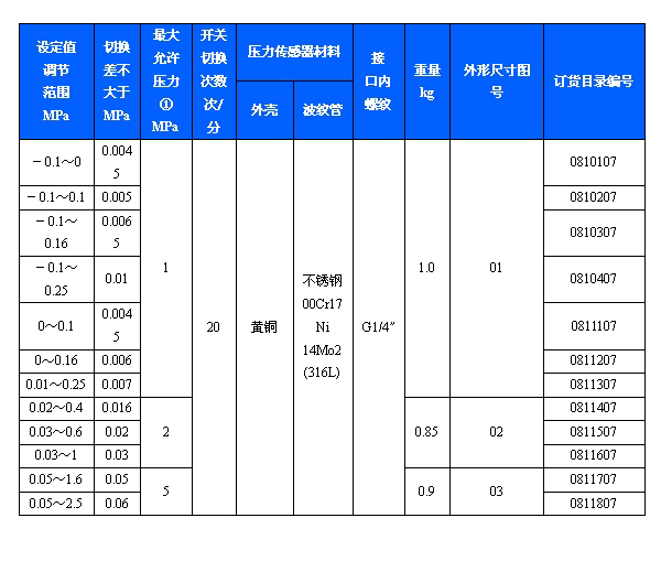 規(guī)格:切換差不可調(diào)(小切換差,無防爆型)